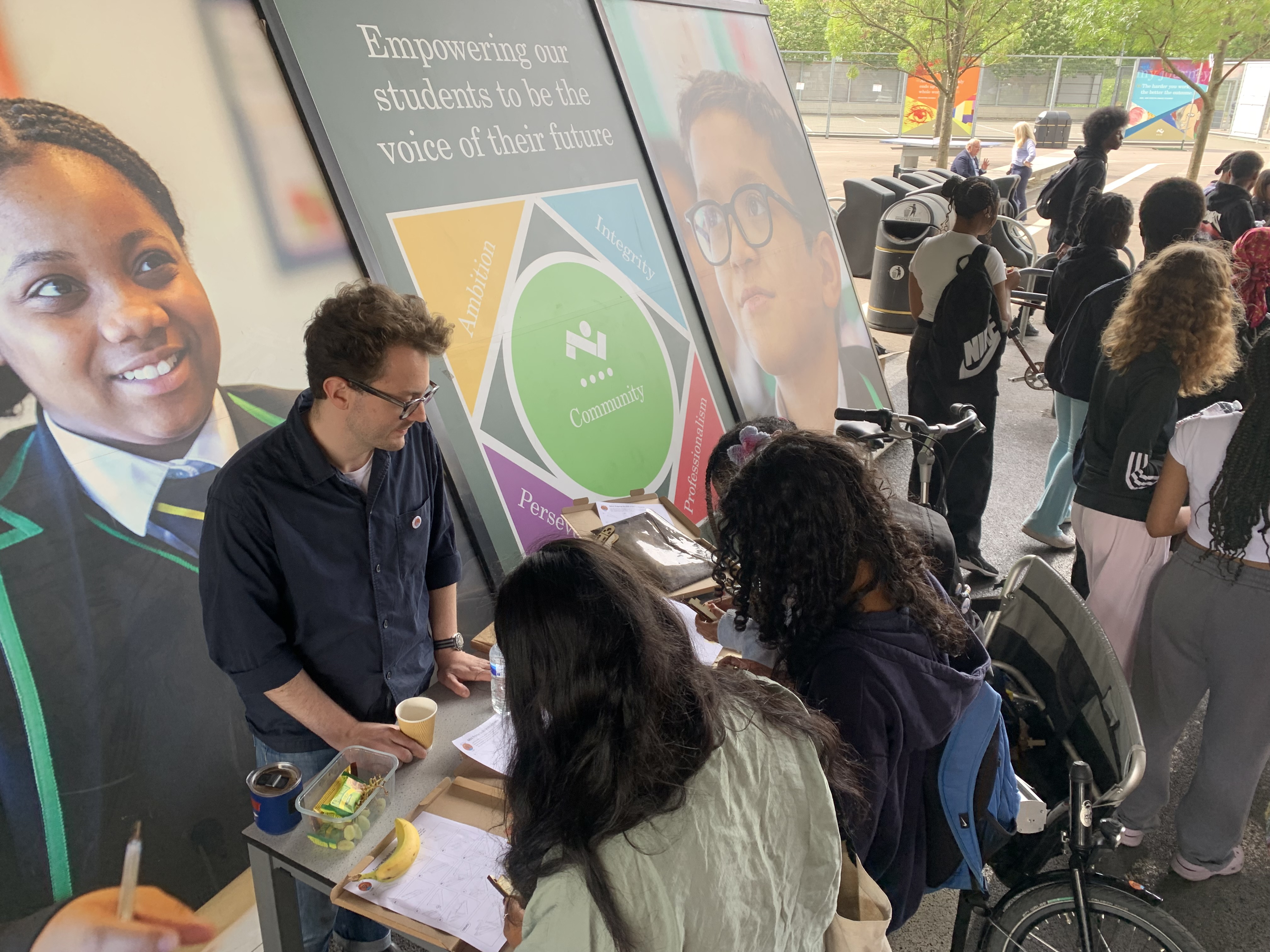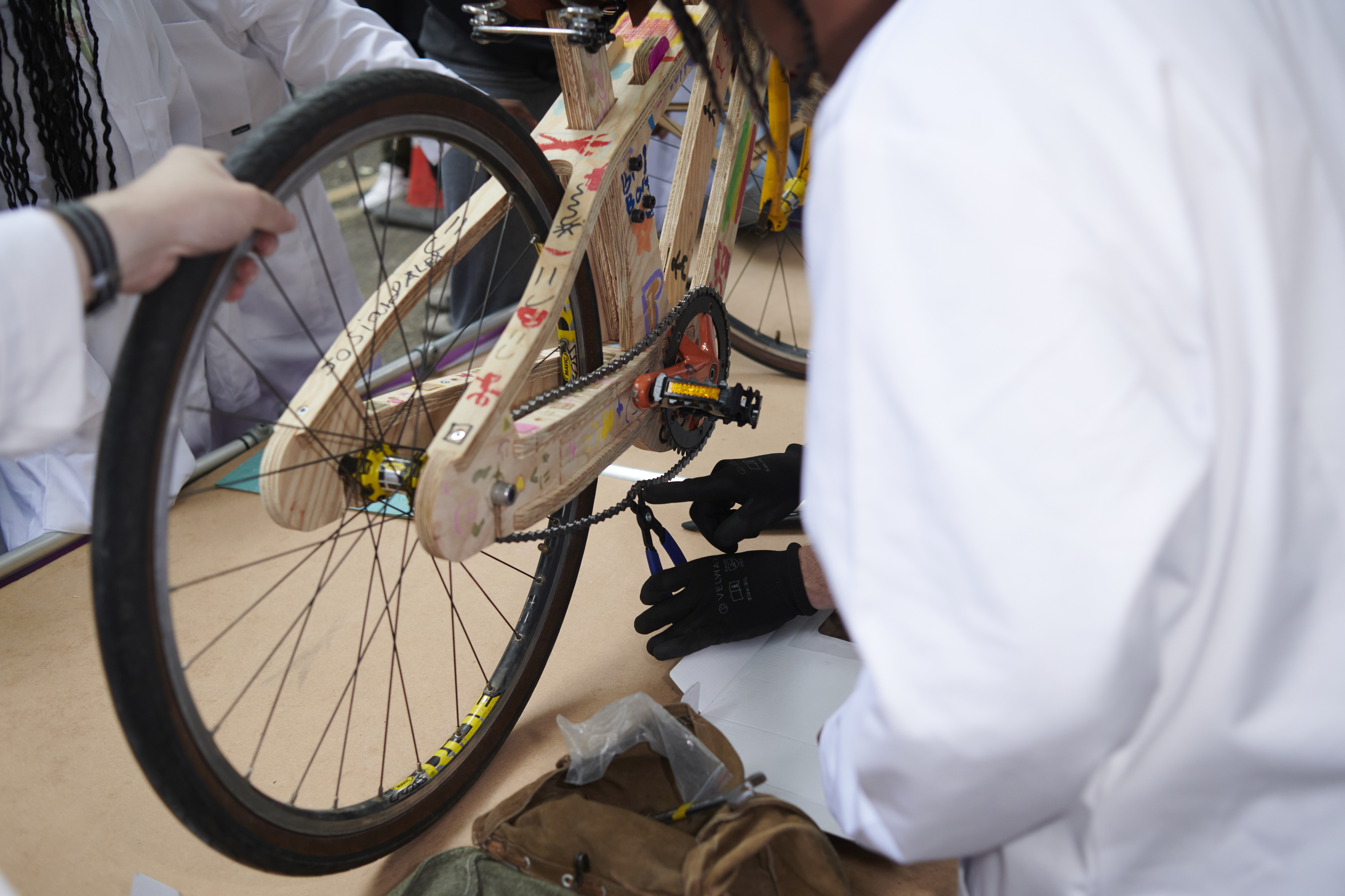 Our first workshop took The Wooden Bike and the mini-frame kits to Evelyn Grace Academy’s Futures Festival, an event encouraging students to think about their next steps.