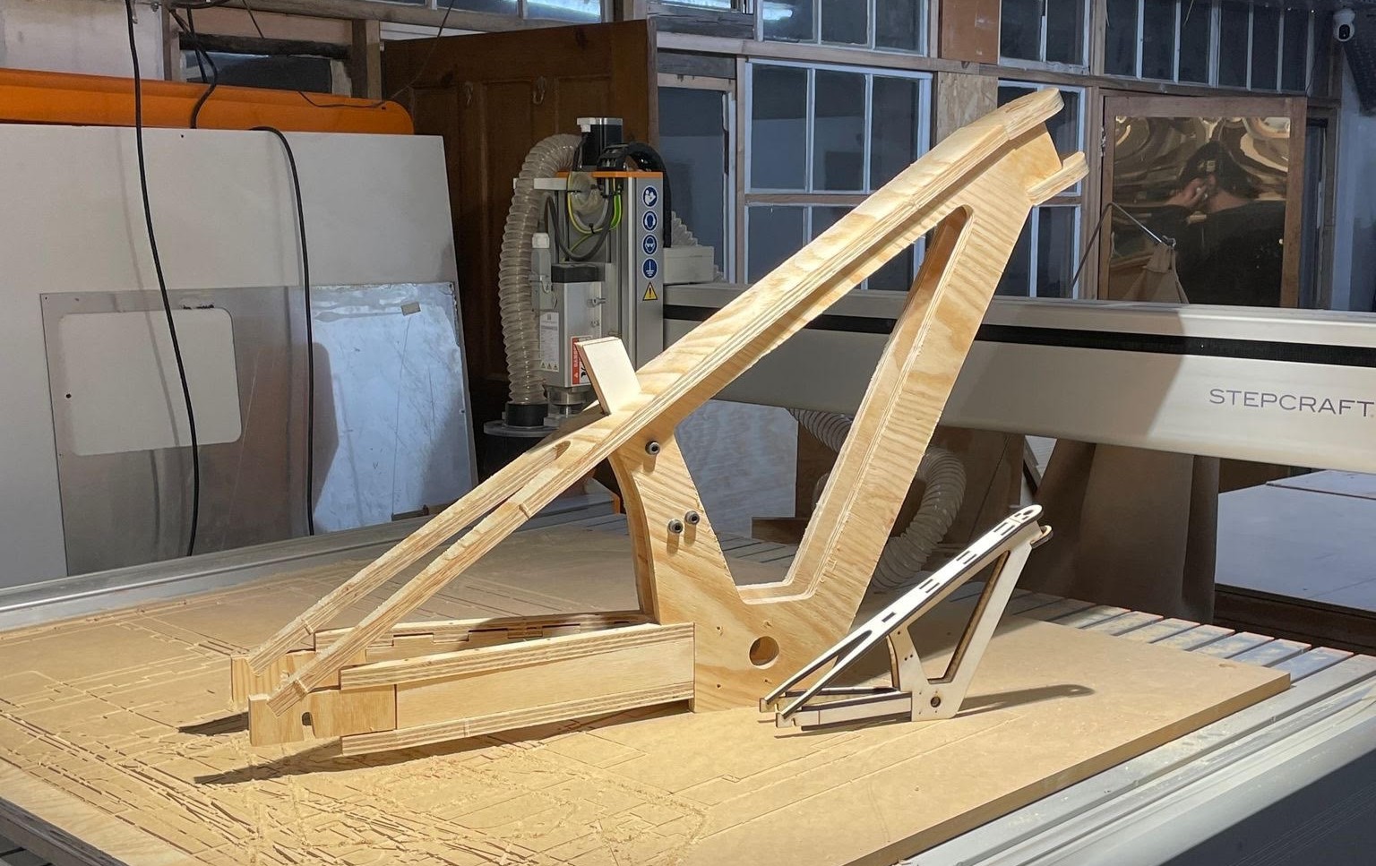 Within weeks, Alex had designed the first prototype, and Ben, using a CNC machine and sustainably sourced timber cut the initial frame Mike, our mechanic at upCYCLE LDN, then fitted salvaged bike components to make it rideable.